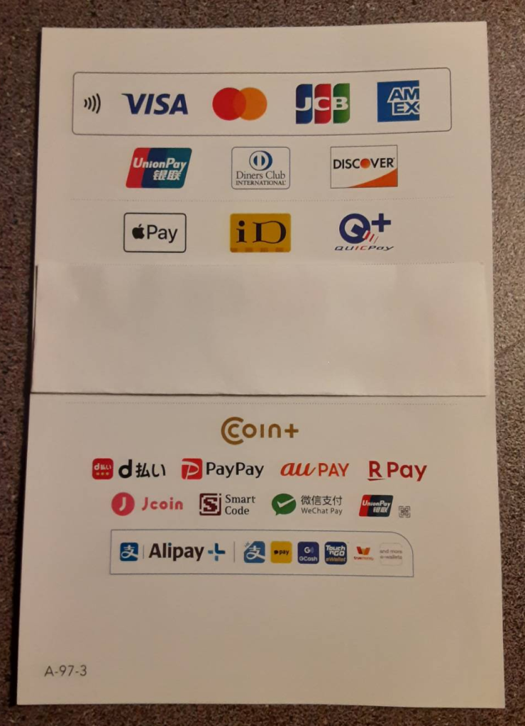 現金を含む以下のお支払い方法がご利用いただけます。